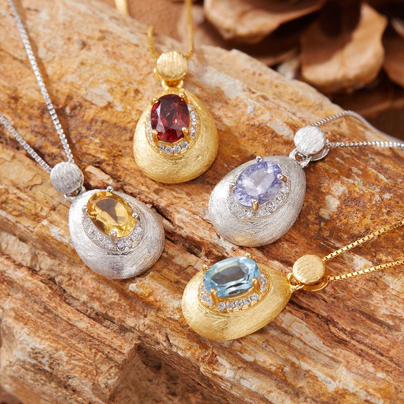 Натуральный аметистовый кулон-ожерелье женское S925 стерлинговое серебро матовое с танзанийским диопсидом топаз гранат цветной сокровище