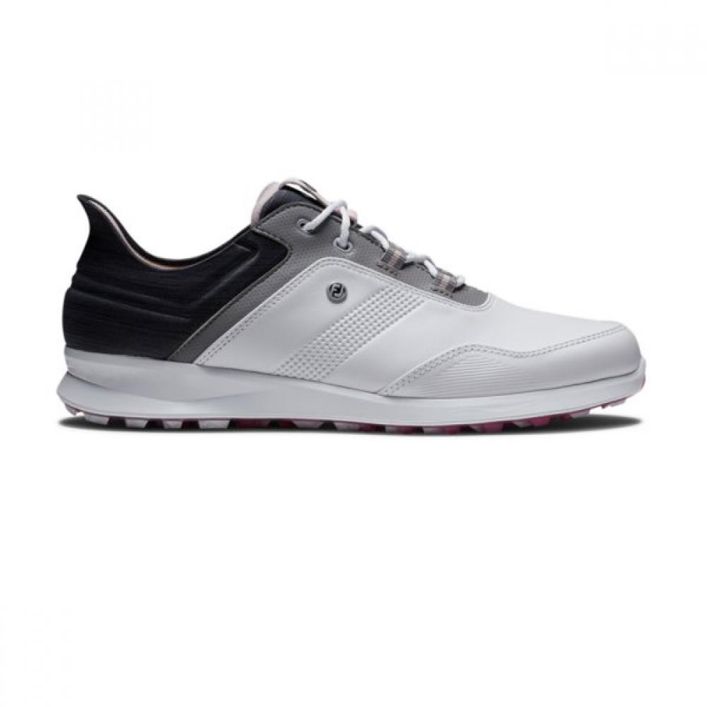 The Stratos Women's Golf Shoes feature a contemporary comfort design and are equipped with a Cloud-like Comfort Stratos Foam suspension system. Made with high-quality Napa leather from Britain's Pitta Company, these shoes provide a soft fit and optimal support and comfort in various golf environments. They also absorb impact to minimize foot fatigue, featuring a Versa Trax+ spikeless sole for excellent performance in diverse conditions. The shoes come with a one-year waterproof guarantee, enhancing their practicality.