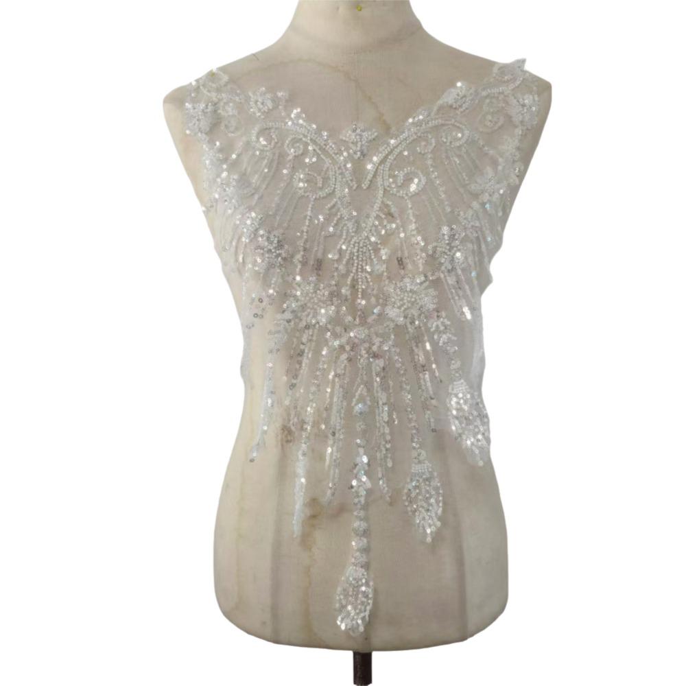 Европейский стиль Бисером Блестками Кружевная нашивка Белое Свадебное платье Аппликация Свадебное платье — купить товар онлайн с бесплатной доставкой по всему миру!