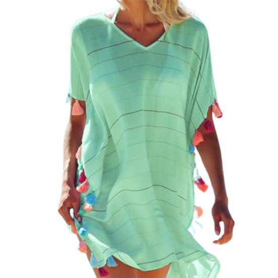 С коротким рукавом, кисточкой, V-образным вырезом и боковым сплит-дизайном, покрытие купальника может показать ваш уникальный и очаровательный.