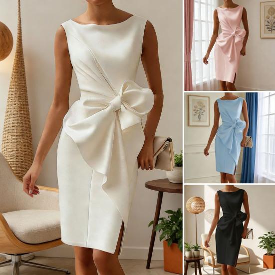 Элегантный дизайн без рукавов: Это платье без рукавов обеспечивает flattering силуэт, подчеркивает свободу движений и сохраняет прохладу.. Акценты в виде бантов на талии добавляют очарования, создавая сбалансированный образ, который одновременно прост и утончен.
