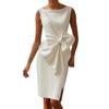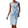 Это женское платье изготовлено из высококачественного полиэстера, обеспечивающего повседневную, свободную посадку, которая гарантирует комфорт в течение всего дня.. Мягкая, легкая ткань нежно прикасается к коже, что делает ее идеальным выбором для теплой погоды.. Это однотонное платье без рукавов с элегантными бантами на талии сочетает в себе простоту и утонченность..
