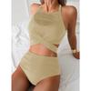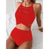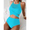 Сексуальный Черный Сет Бикини с Сетчатыми Вставками 2025 Женский Купальник с Завязками на Шее и Крестом Высокая Талия Пляжный Купальник