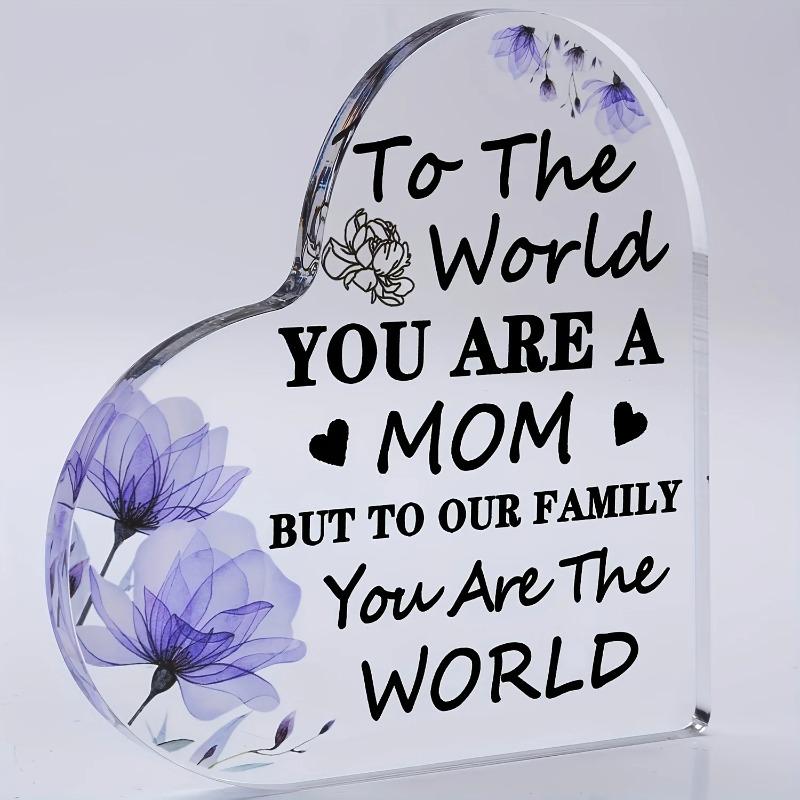 2D Flat "To The World You Are A Mom But To Our Family You Are The World" Acrylic Desktop Decoration Plaque, Home Decor Plaque Hanging Wall Art Decorat