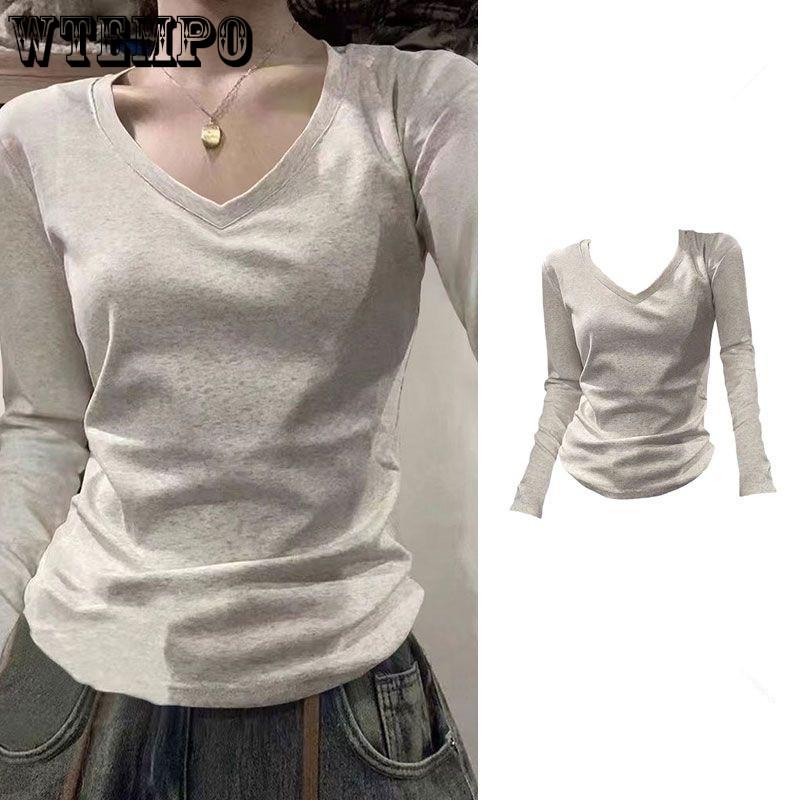 V-neck Long Sleeved T-shirt for Women in Spring and Autumn with A New Design and Slim Fit Top — купить товар онлайн с бесплатной доставкой по всему миру!