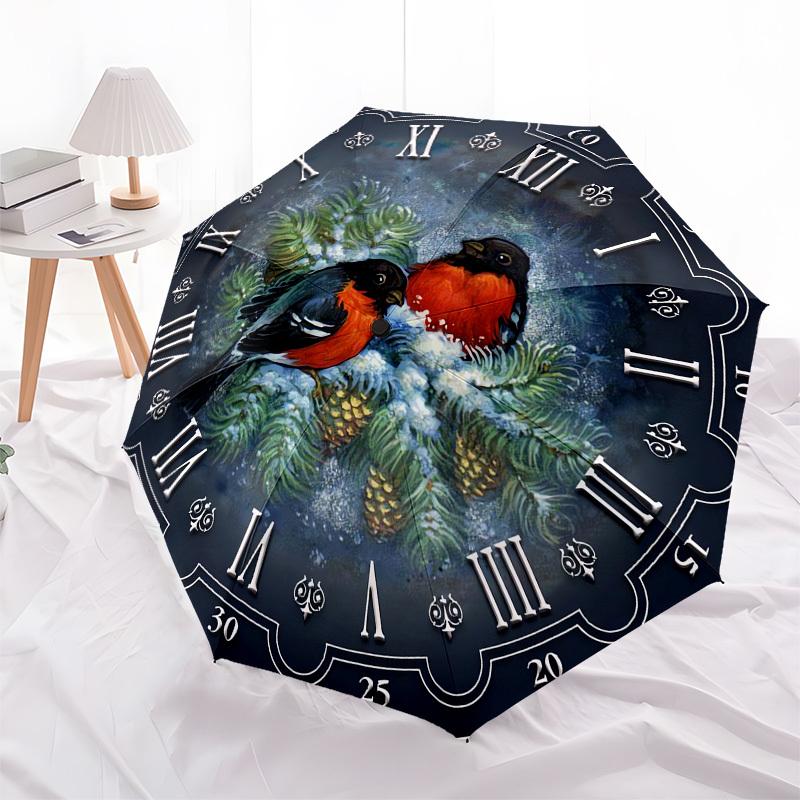 1pc Winter Bird Clock Design Umbrella with Plastic Handle,Suitable for All Seasons UmbrellaPT564 — купить товар онлайн с бесплатной доставкой по всему миру!