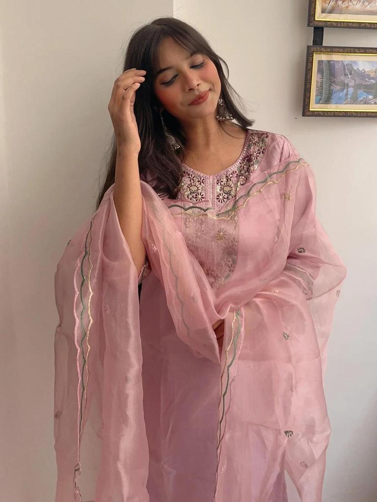 Женский шелковый смесовый комплект курта брюки дупатта дизайнерский наряд для вечеринки Болливуд топ туника курти костюм