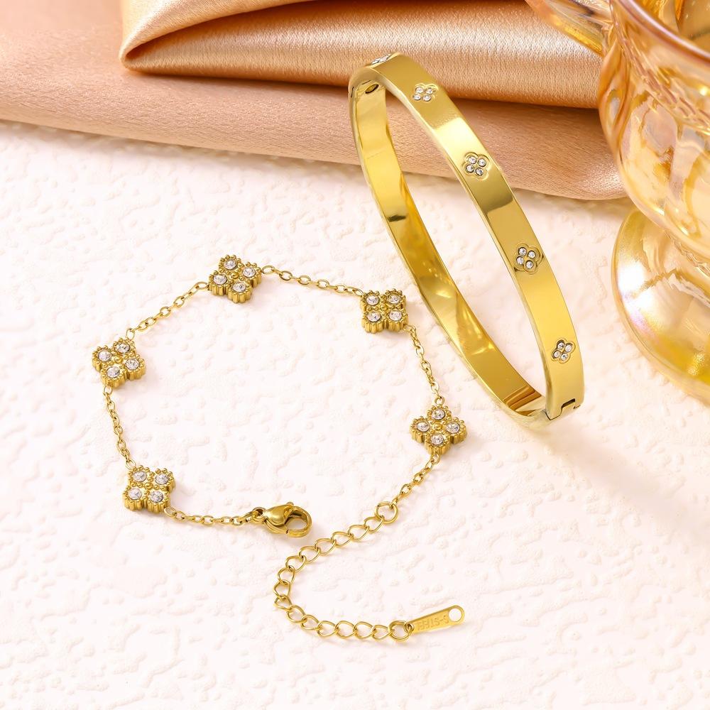 Браслет с бриллиантами в виде клевера из 18-каратного золота Женский модный браслет с бриллиантами Сочетающаяся бижутерия 2026
