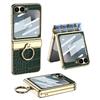 Роскошный чехол из кожи с покрытием для Samsung Galaxy Z Flip 7 6, магнитный чехол-крышка со встроенным кольцом-держателем для шарнира для чехла Galaxy Z Flip 5