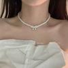 Модное жемчужное колье с бантом Элегантная универсальная женская цепочка для свитера с текстурой Цепочка на ключицы