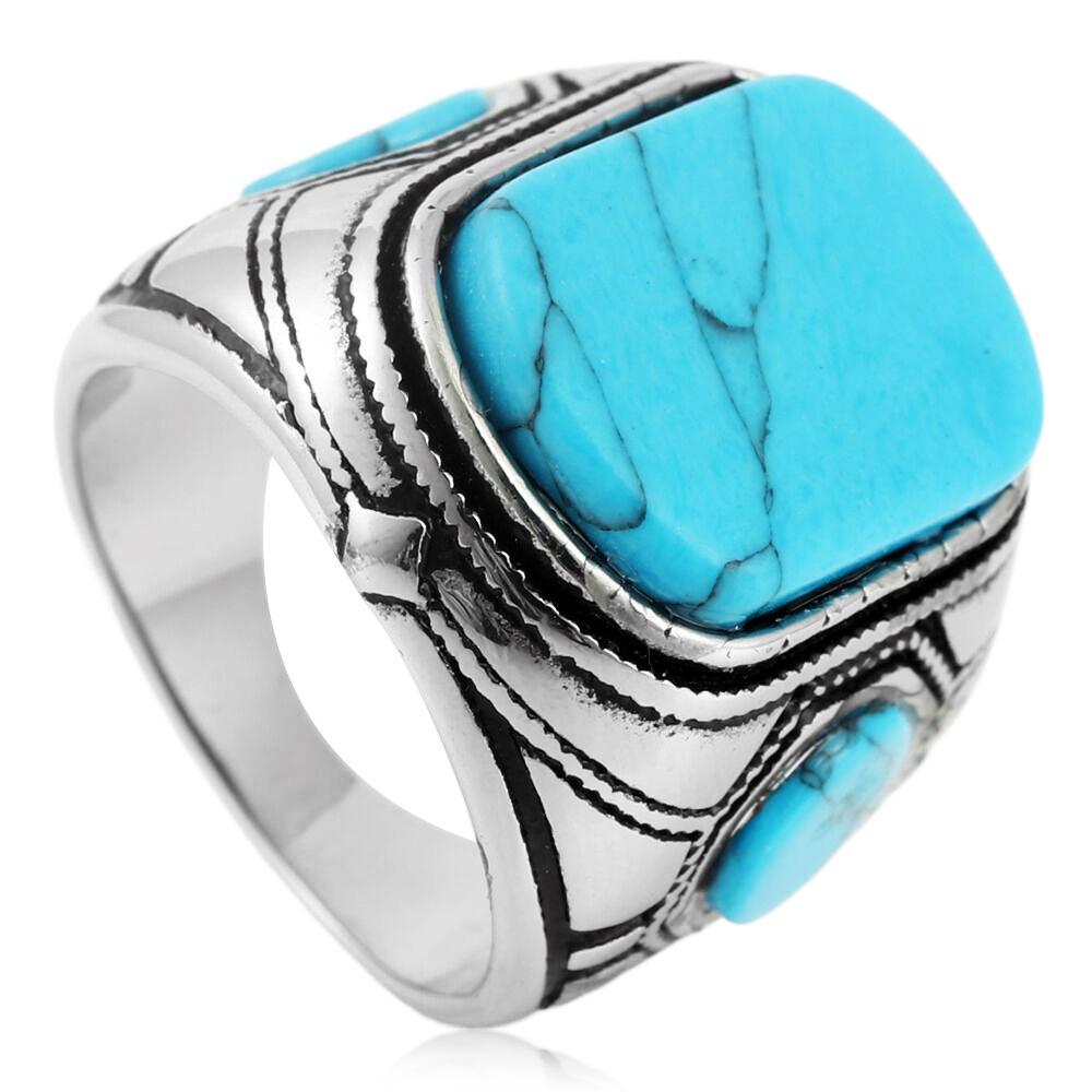 2026 Бирюзовый узор Европейское и американское бирюзовое мужское кольцо Модное кольцо для пары с индивидуальностью в ретро-стиле — купить товар онлайн с бесплатной доставкой по всему миру!