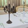 Height 17in Vintage 5-Arm Candle Holder – Rustic Brown Iron Candelabra for Tabletop Decor – Antique-Style 5-Light Candle Stand