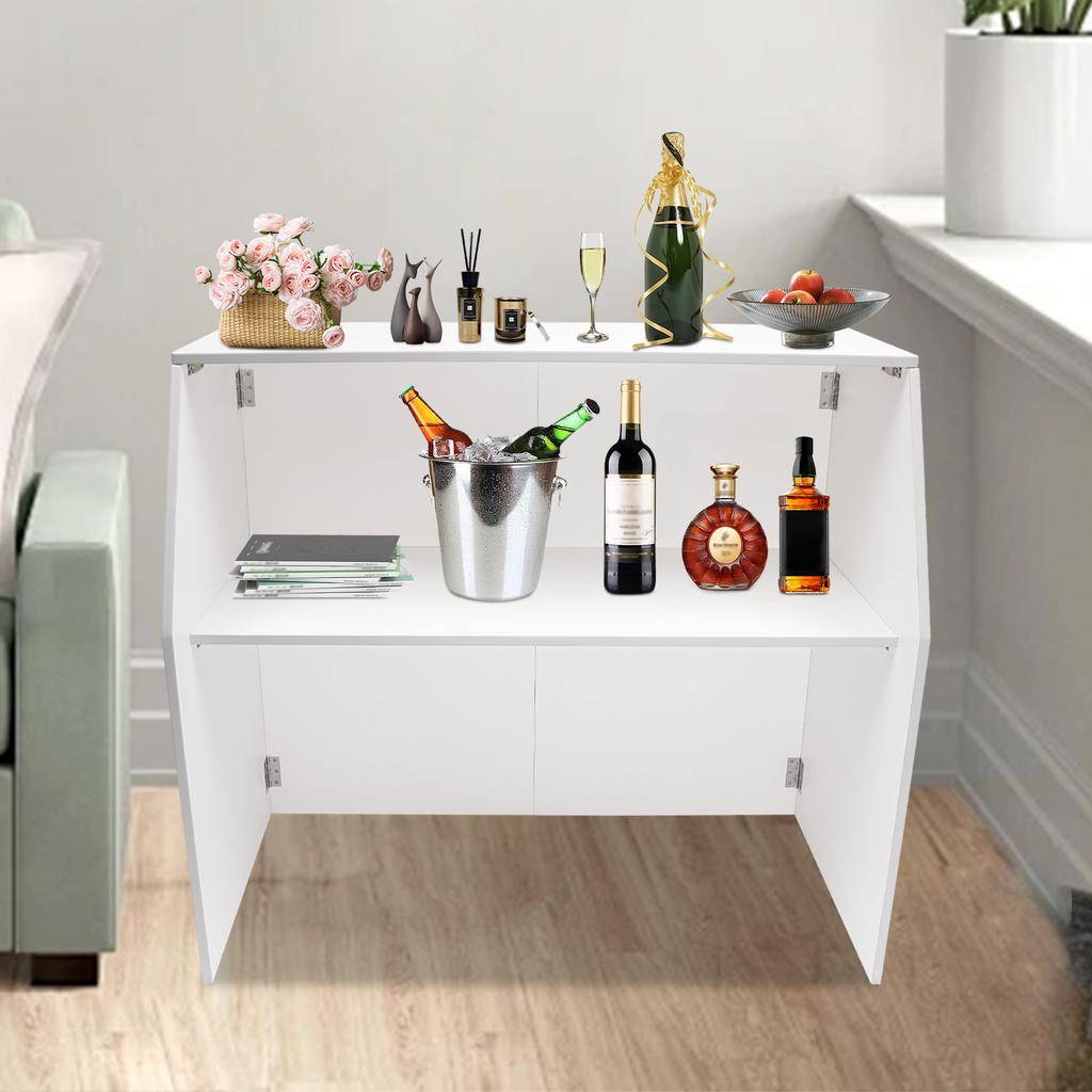 Modern White Foldable & Portable Bar Cabinet with Aluminum Trim for Parties, Events, BBQs - Lightweight & Sturdy Display Cabinet