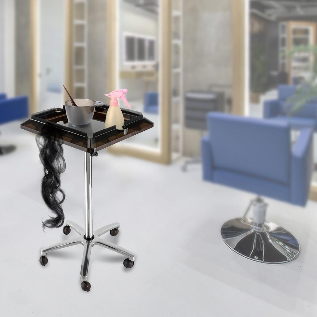 Removable Hair Extension Tool Tray Cart, 5-Wheel Adjustable 70-110cm Height Wig Holder Stand, Silver & Black Styling Station