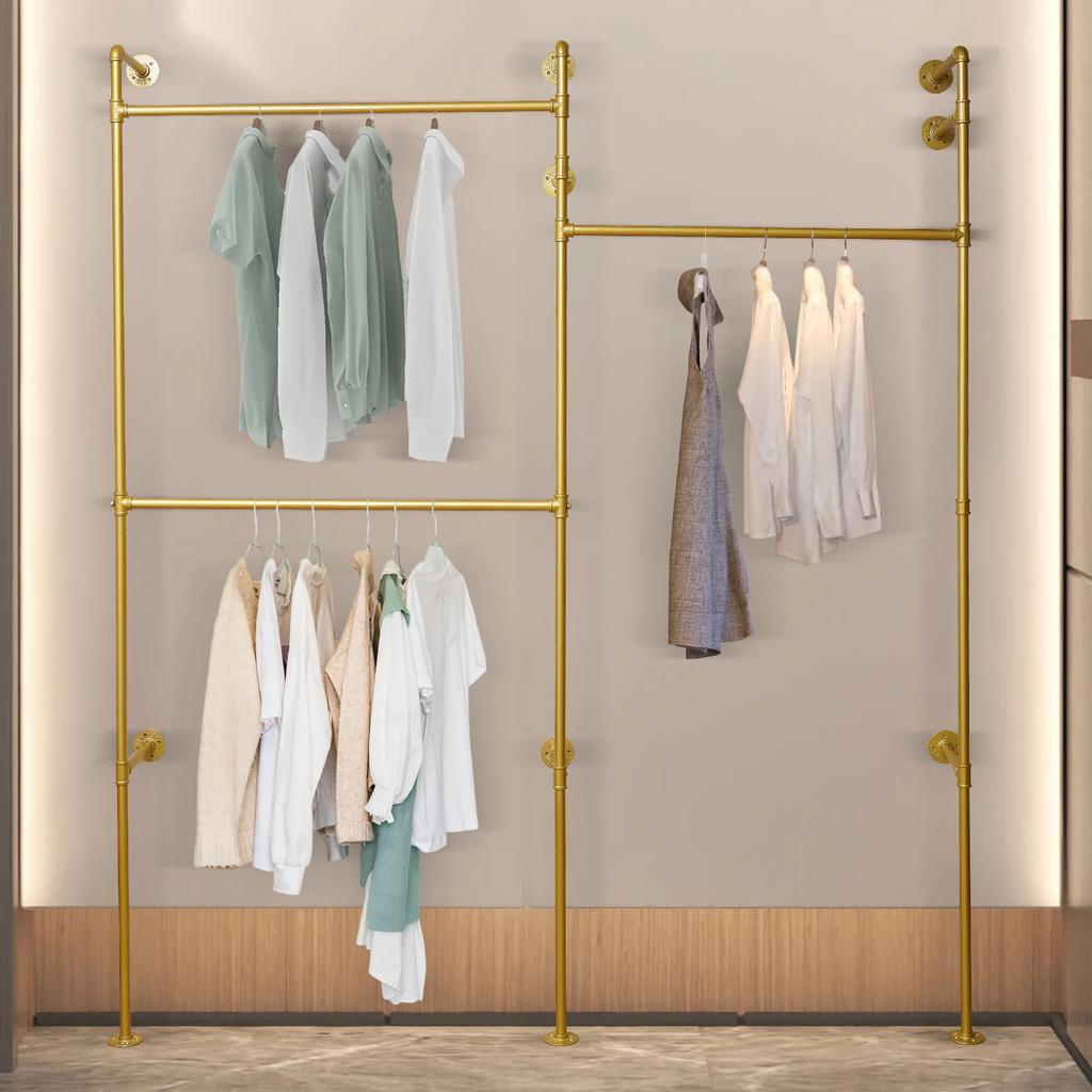 Vintage Industrial Pipe Clothing Rack, Wall Mounted Garment Rack with 3 Shelves, Iron Coat Hanger for Hallway, Rustic Home Decor — купить товар онлайн с бесплатной доставкой по всему миру!