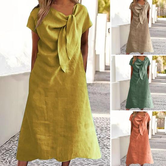 Мягкая и удобная ткань: Это однотонное платье, изготовленное из высококачественного хлопка, обеспечивает мягкость и комфорт, обеспечивая наилучшие ощущения от ношения в течение всего дня.