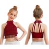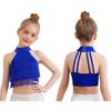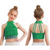 Девочки Сальса Латинские Танцы Укороченный Топ: Безрукавка с бахромой и ремешками на спине с многоярусной бахромой для соревнований