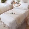 Beauty Salon Chinese Bed Flag Dust Proof Bed Cover Massage Foot Massage Bed End Towel Zen Inspired Decorative Long Bed Blanket Tassel Linen Fabric
