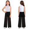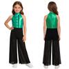 Блестящий металлический и сетчатый танцевальный комбинезон для девочек: Топ без рукавов с воротником-стойкой и оборками на лифе и струящиеся широкие брюки для сцены