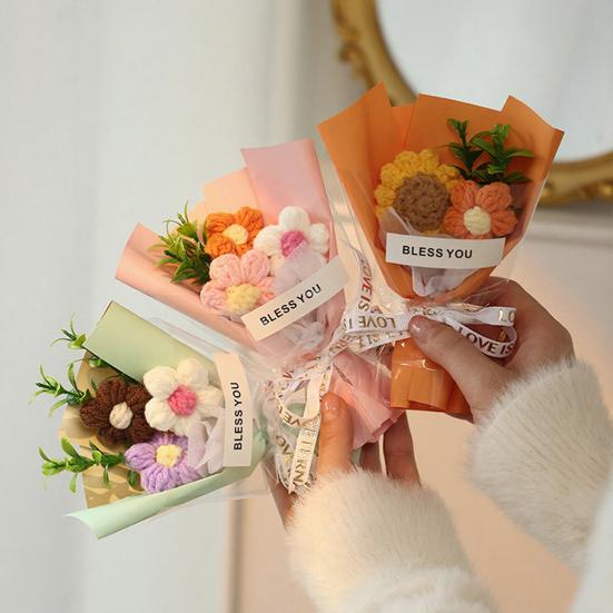 Ручная работа и реализм в каждом цветке: Каждый цветок в этом готовом смешанном вязаном крючком букете тщательно связан вручную опытными мастерами из мягкой молочной хлопковой пряжи.. Детальное мастерство повторяет нежную красоту настоящих цветов, предлагая реалистичную эстетику без хрупкости живых растений.