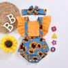 Новорожденный Боди с рукавами-рюшами Комбинезон Повязка на голову Одежда Ромпер Набор