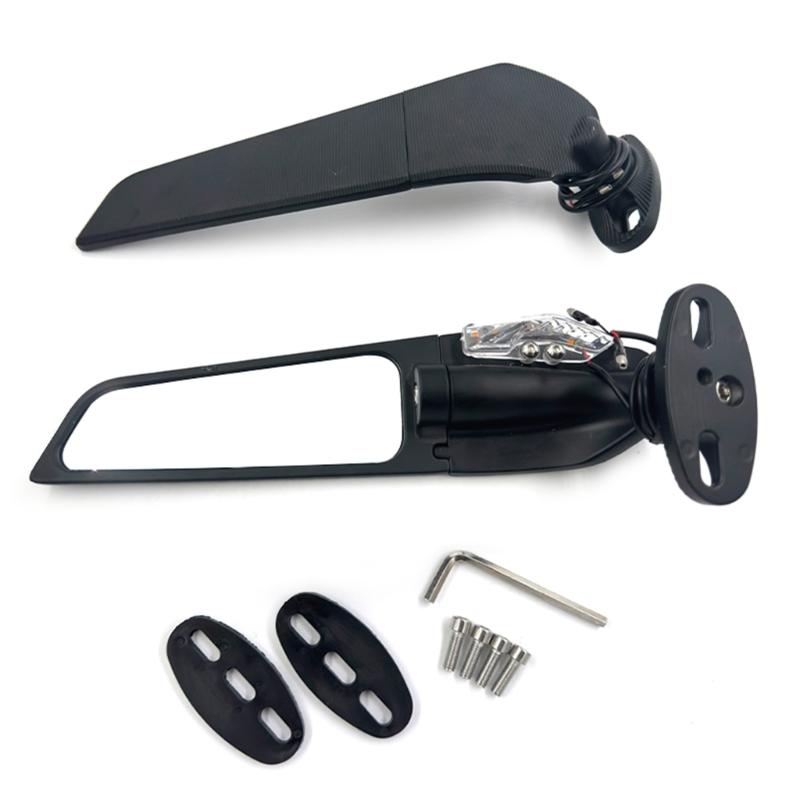 Motorcycle Modified LED l Rearview Glass Sport Motorcycle Left Right Side Wing Glass with LED Lights Replacement