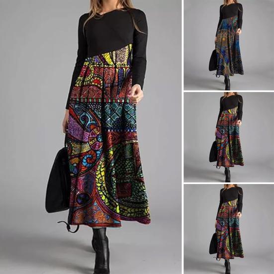 Богемная элегантность: Ощутите стиль бохо-шик с этим длинным платьем с цветочным принтом и длинными рукавами.. Плавный силуэт излучает элегантность и изящество, что делает его идеальным выбором для различных случаев.