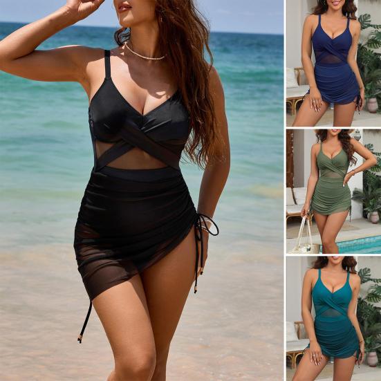 Стильная Элегантность: Украсьте свой пляжный образ этим женским купальником с перекрученной застежкой спереди, сетчатой талией и юбкой для создания шикарного и сексуального образа.. Найдите идеальный баланс между привлекательностью и изысканностью, одновременно с этим сдержанно подчеркивая свою фигуру.