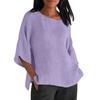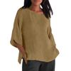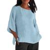 Вечная элегантность: Простота и стиль этой льняной рубашки с повседневным круглым вырезом и однотонным дизайном.. Модные рукава 3/4 и версия plus-size добавляют нотку изысканности, делая ее универсальным выбором для любого сезона.