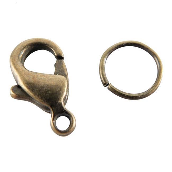 Lobster clasps and split rings - DTM - Set of 4 clasps and 10 rings - Bronze color - Unisex - 10 mm — купить товар онлайн с бесплатной доставкой по всему миру!