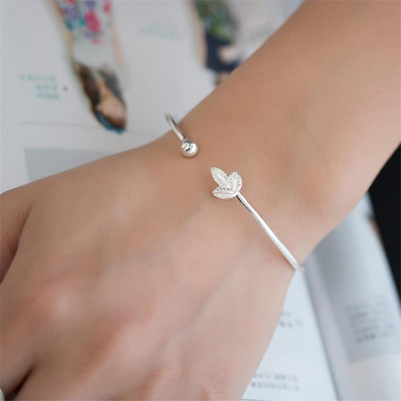 Adjustable Sterling Silver Tone Jewelry Female Sleek Minimalist Leaf Bangle For Women Bracelets Cuff Bangles Sl044Simple Bangle