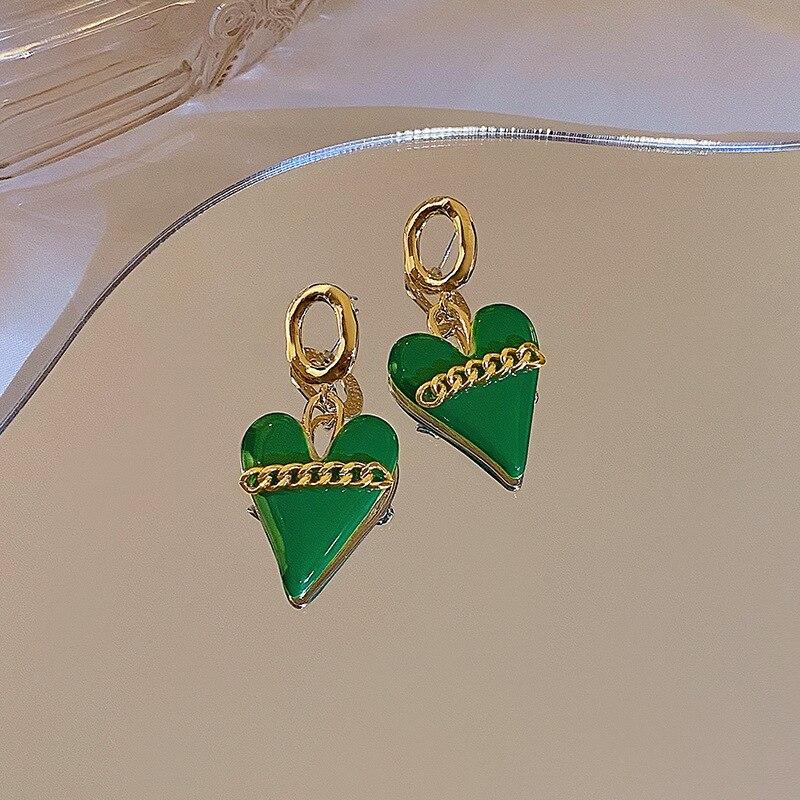 Trendy Style Fashionable Gorgeous Green Heart Metallic Dangle Earrings Latest Korean Style Brincos JewelryFashion Dangle