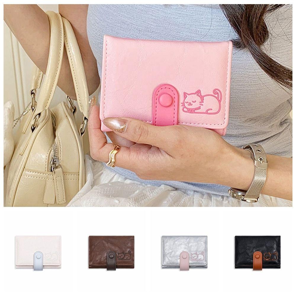 Милый Короткий Кожаный Кошелек PU Кожаный Трехскладной Кошелек Универсальный Кошелек с Принтом Кошки Для Девочек