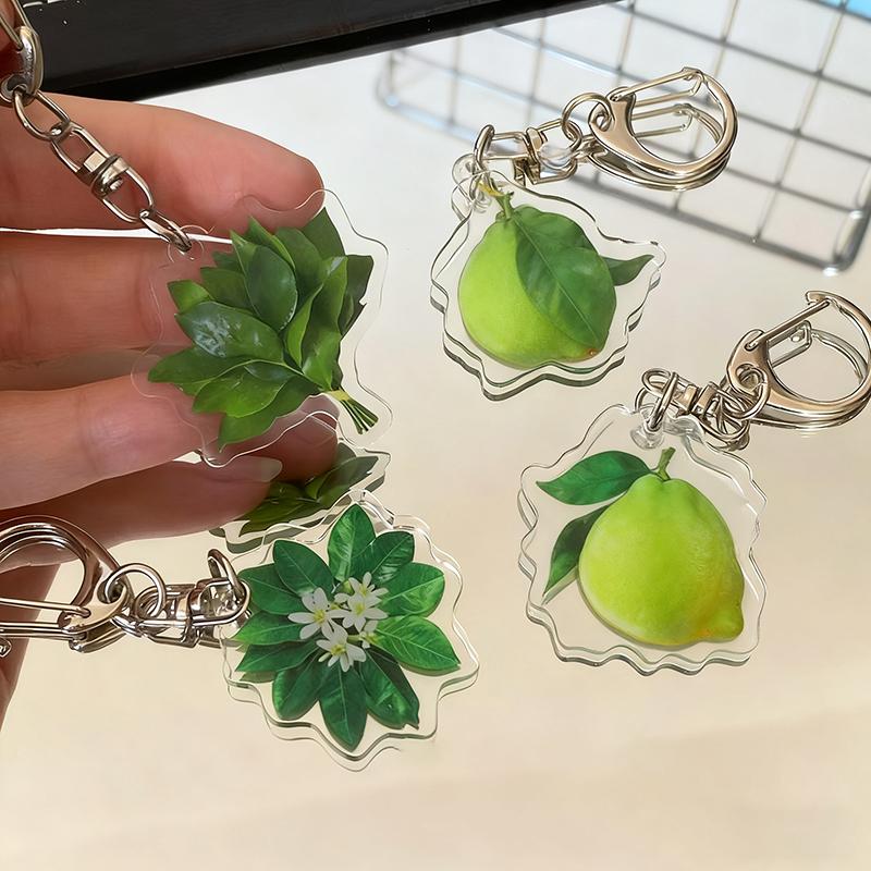 Creative Pomelo Leaf Acrylic Keychains Women Hanger Pendant Decoration Bag Charm Car Keyring Accessories Gifts