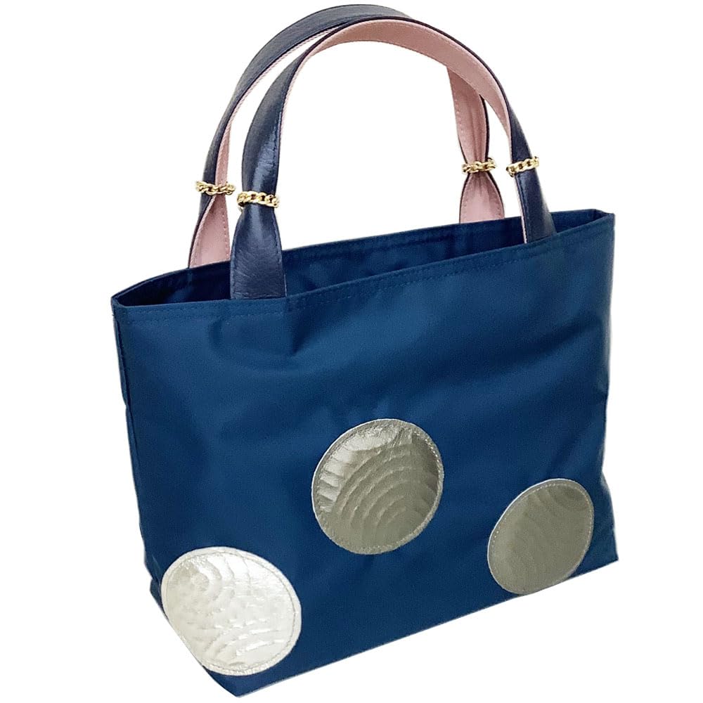 [HARUBE] Киото Нанивая Легкая нейлоновая сумка-тоут, Сумка, Окрашена вручную мастером, Элегантная, Женская # J5-384 [Серый] (военно-морской флот (Контрастный синий))