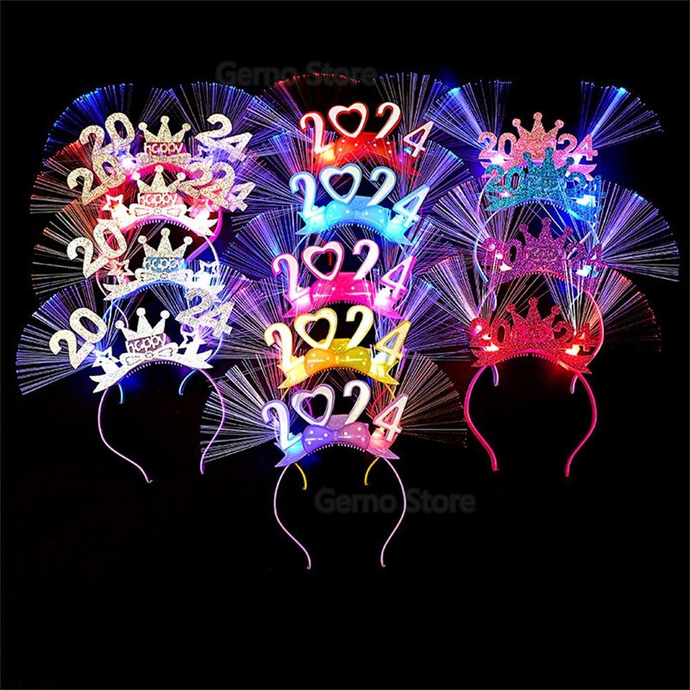 Пластиковый повязка на голову с Новым годом 2024, светодиодный светящийся новогодний головной убор, светодиодный светящийся головной убор, подарок на Новый год — купить товар онлайн с бесплатной доставкой по всему миру!