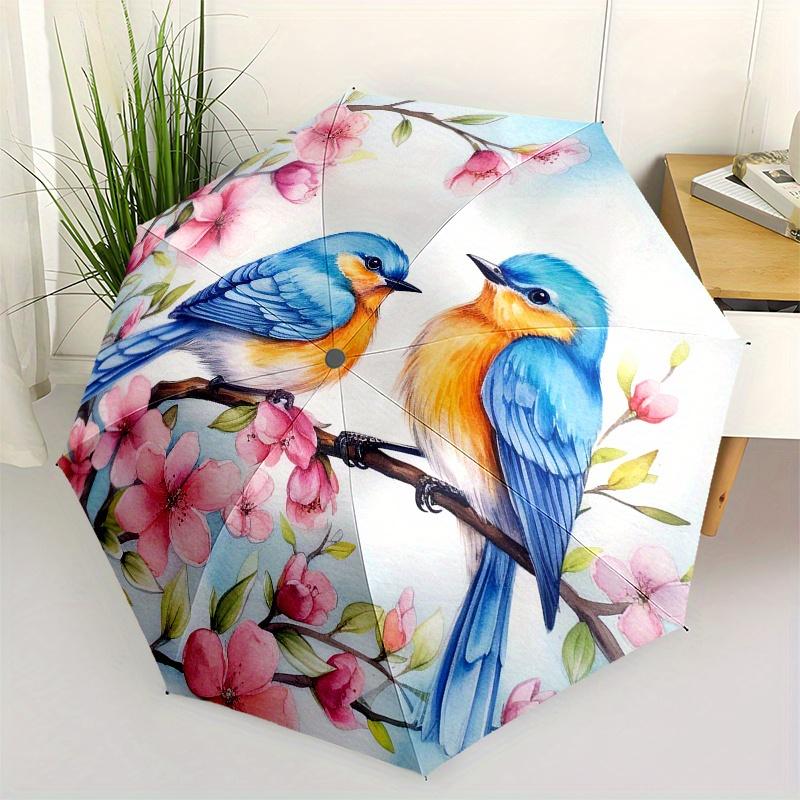 Spring Blossom Birds Wall Art PrintUmbrella, Portable 3-Fold Compact Umbrella for Men & Women Gift