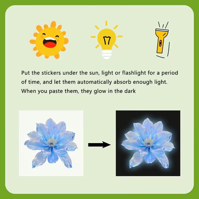 Glow-In-The-Dark Rainbow Blue Flower Toilet Sticker Shiny Crystal Floral Theme Decal Self-Adhesive Removable Bathroom Decoration