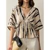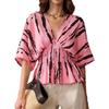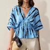 Женская блузка с принтом «Мазки кисти», V-образным вырезом, рукавами летучая мышь, приталенной талией и баской