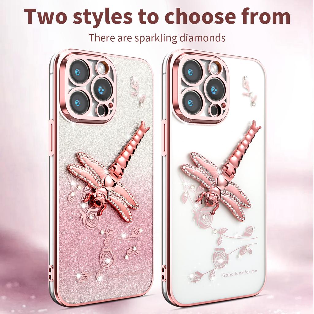 KADEM Чехол для iPhone 14 Pro с подставкой-ножкой в виде стрекозы, ТПУ, с цветами и блестками, чехол для телефона