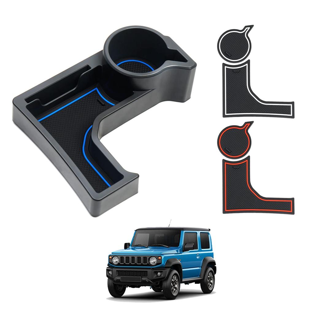 2. [Установить содержимое]: 1 подстаканник, разработанный специально для Jimny, 3-цветные противоскользящие коврики. Коврики бывают 3 цветов (красный, синий и белый), а белый красиво светится зеленым ночью!