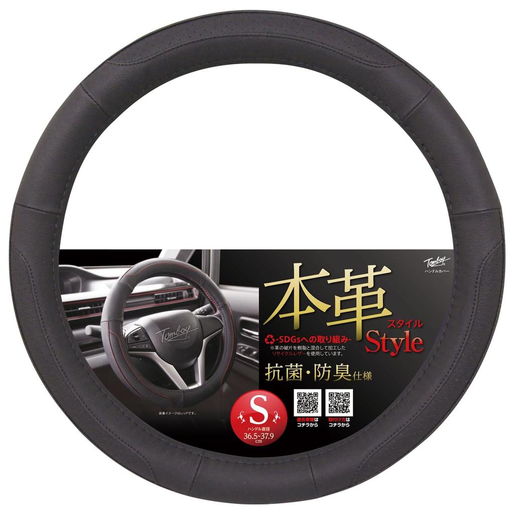 Nishiki Sangyo Tomboy Рулевое колесо Накладка на руль из натуральной переработанной натуральной кожи, Кожа, Кожа, Внешний вид, Антибактериальная, Черный, Маленький, GL-9250