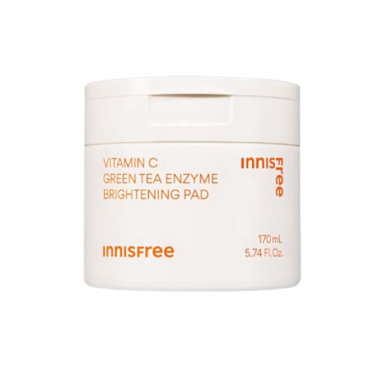 These Innisfree toning pads combine the brightening power of Vitamin C with gentle green tea extracts and enzymes to help fade dark spots and uneven skin tone. Pre-soaked pads make exfoliation effortless while calming and refreshing your skin in one step. Ideal for daily use, they help refine texture, boost radiance, and leave the complexion feeling soft and revitalized.