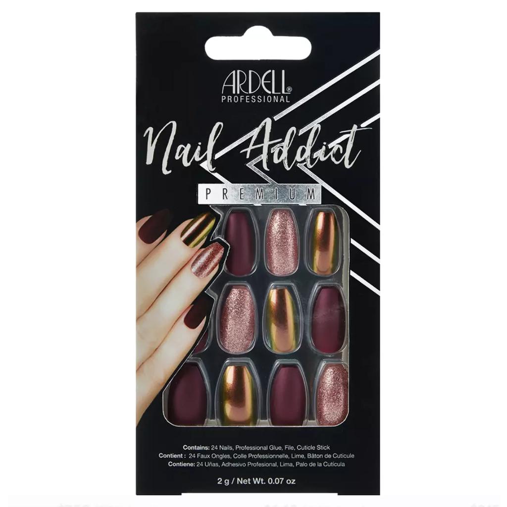 Sztuczne paznokcie bordowo-różowe brokat i mat Red Cateye Ardell M 28szt — купить товар онлайн с бесплатной доставкой по всему миру!