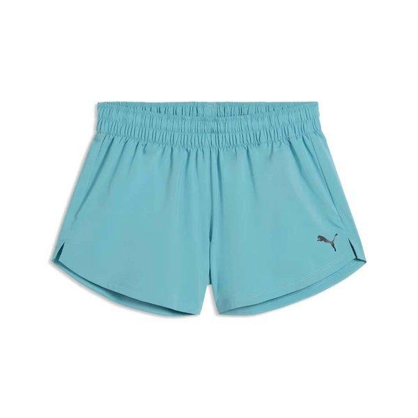 The Puma 525903 99 Women's Running Shorts TAD ESSENTIAL 3 inch Woven Shorts offer a comfortable fit made from lightweight woven material. With a 3-inch length, they allow for free movement, and the Puma logo on the side enhances the stylish design. Featuring an adjustable waistband structure, they are suitable for running and other sports activities.