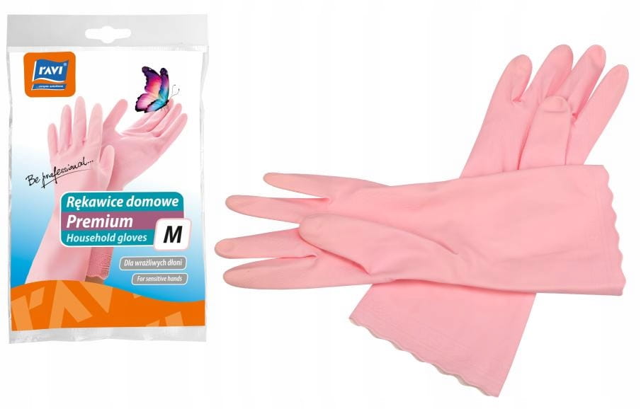 Protective household cleaning gloves M pink rubber 1 pair