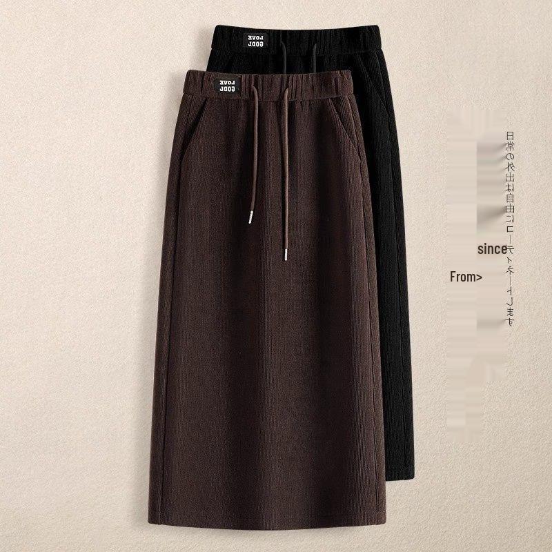 Женская миди-юбка с высоким поясом и плюшем - А-силуэта, на кулиске с эластичным поясом, с прямым подолом, облегающая бедра, Осень/Зима 2025 — купить товар онлайн с бесплатной доставкой по всему миру!