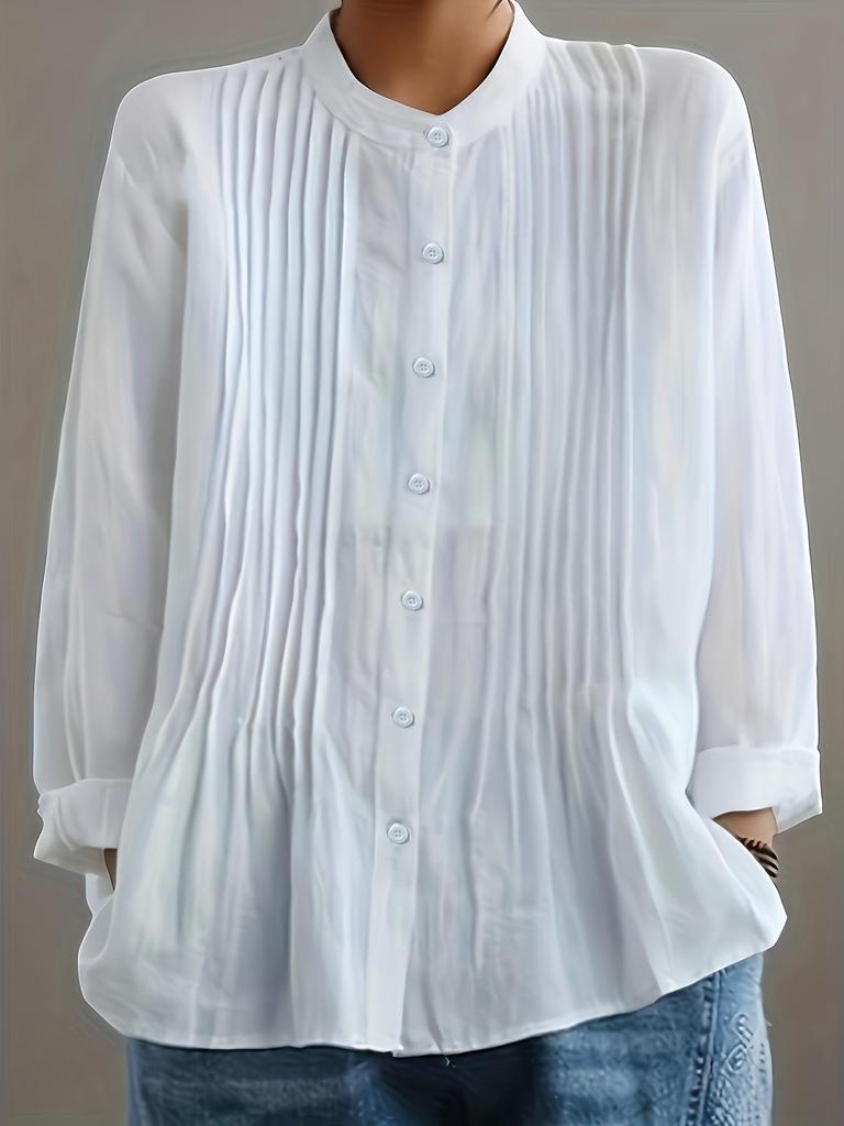 Примите вневременной стиль с этой женской белой ретро хлопково-льняной плиссированной рубашкой с длинным рукавом. Эта рубашка, изготовленная из высококачественного льна, обеспечивает мягкость и воздухопроницаемость, что идеально подходит для ношения в течение всего дня.. Благодаря сплошному узору, он отличается свободным кроем, который сочетает комфорт с классической элегантностью.. Дизайн дополнен длинными рукавами и шикарным круглым вырезом, что делает его универсальным дополнением к любому гардеробу.. Идеально подходит как для повседневных выходов, так и для изысканных мероприятий, эта рубашка обещает стать незаменимой вещью на долгие сезоны.