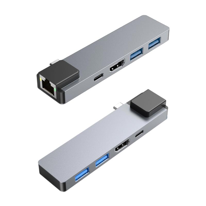 Aluminum Alloys Multiports USB C Adapters Supports PD100W Charging HDTV 4K30Hz Display For Laptop