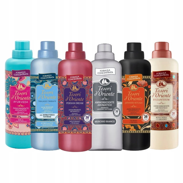✅ Różne warianty zapachowe: Byzantium, Japanese rituals, Ammorbidente aromatico, Persian dream, Thalasso therapy, Ayurveda